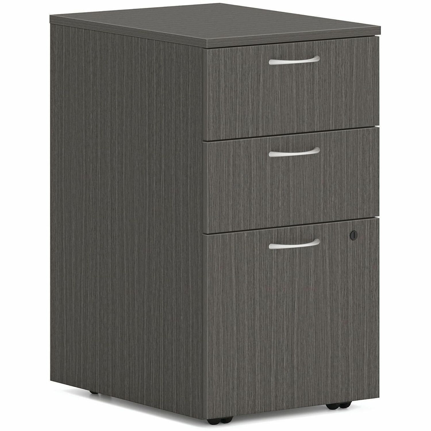 | Product Description | This 15" wide mobile pedestal is part of the HON Mod Desk Collection that delivers simplicity and adaptability to enhance your productivity. The contemporary design feels perfectly at home in either a private office or an open floor plan. Mobile pedestal increases the storage capacity of your Mod workstation. Two box drawers hold office supplies and personal items, and one file drawer organizes paperwork. File drawer is equipped with standard hangrails to hold either letter-size or legal-size hanging files. Drawers open fully to give easy access to all contents. Steel ball-bearing, drawer suspensions operate easily and quietly. Durable, Slate Teak laminate is scratch-resistant, spill-resistant and stain-resistant. Slate Teak matches other Mod elements (sold separately) so you can create an office suite to fit your needs. |