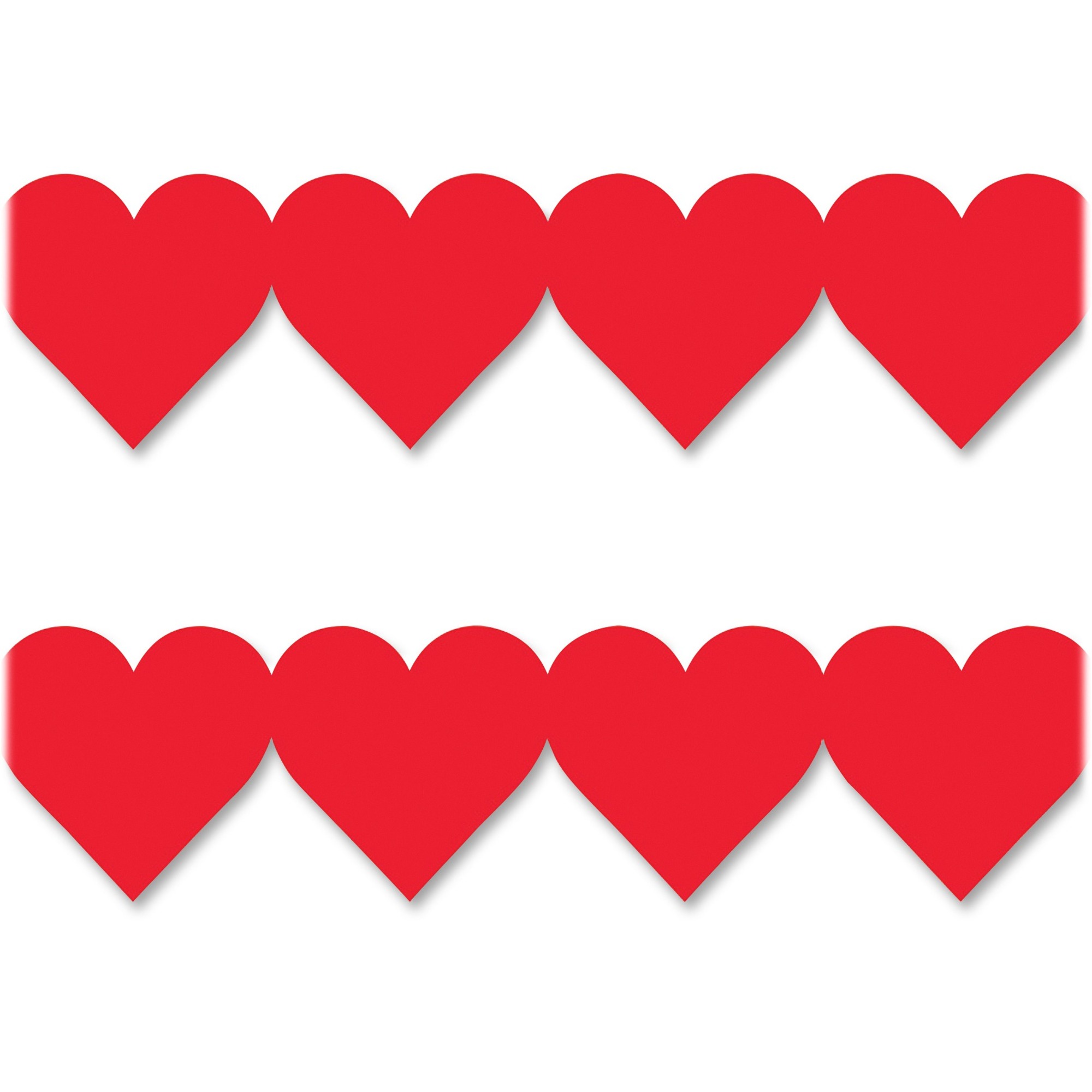 Bright red and bursting with color, this border strip will look fantastic in your classroom. Heart design coordinates with similar items in your classroom to enhance your classroom's theme. Durable construction resists damage for long-lasting use. Border strip is perfect for use on bulletin boards, windows, walls and more. |