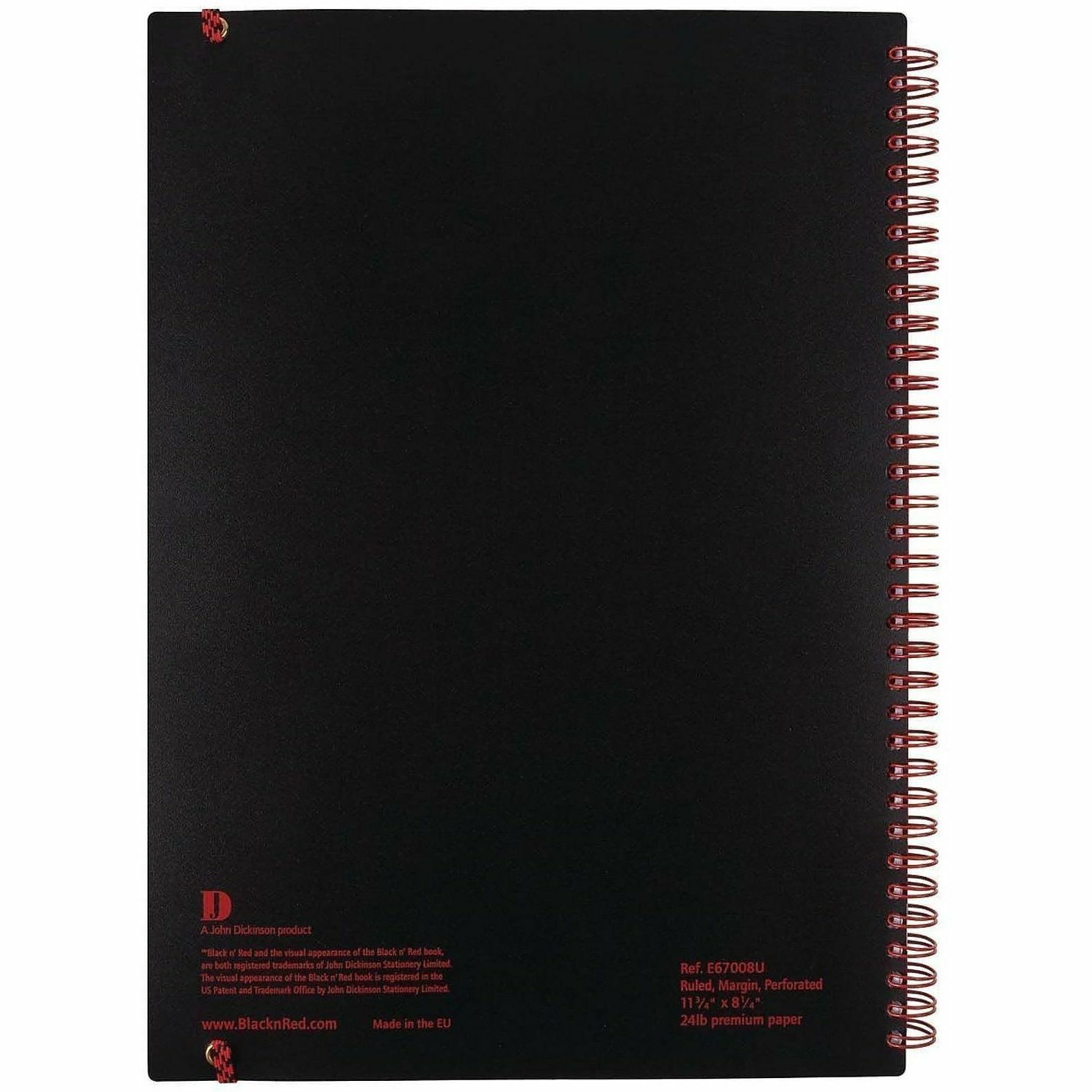 70 Sheets - Twin Wirebound - Ruled Margin - 24 lb Basis Weight - 8 1/4" x 11 3/4" Sheet Size - White Paper - Red Binding - Black Polypropylene Cover - Perforated, Flexible Cover, Wipe-clean Cover, Strap - 1 Each
