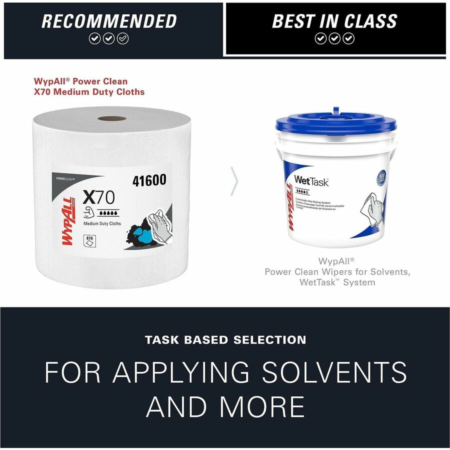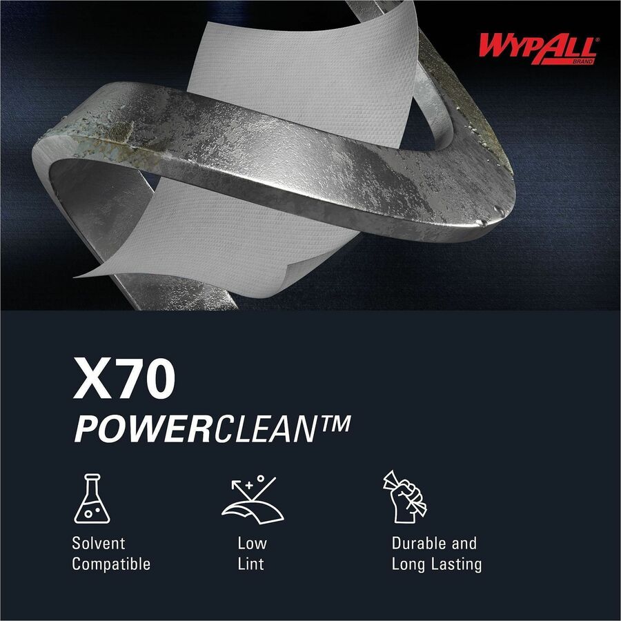 | Product Description | Maximize performance while minimizing time, effort and product waste by using WypAll PowerClean X70 Medium-Duty Cloths. High-tech, HydroKnit material absorbs quickly. Premium industrial cloths are made of soft pulp fibers bonded to a polypropylene base sheet for absorbency and tear-resistance so they remove dirt, oil, grime and solvents in a variety of industrial and manufacturing industries just like laundered shop towels or textile shop rags. They are so sturdy that they can often be used more than once. Throw away the disposable cloths once you've used them a few times. They are designed to clean surfaces and tools, making them a must-have for the HVAC, automotive, manufacturing and industrial industries. Convenient, jumbo roll fits compatible, jumbo roll dispensers (not included). |