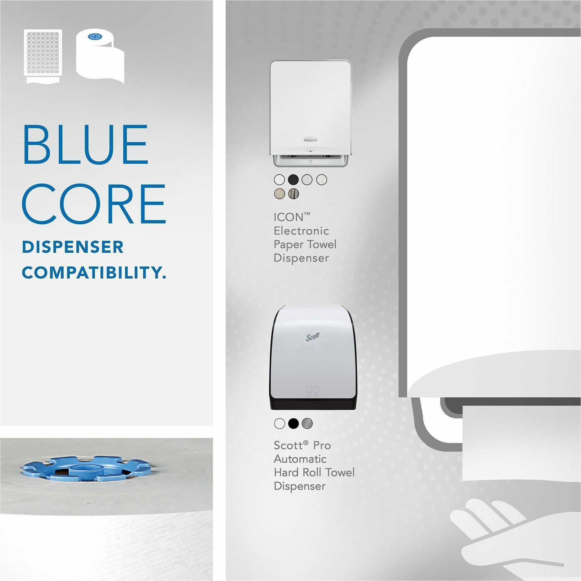 Scott® Pro™ provides state-of-the-art solutions to maximize productivity. Scott® Pro™ Hard Roll Paper Towels with fast-drying Absorbency Pockets™ provide efficient, reliable hand-drying for your washroom or break room. These paper towels are exclusively compatible with the Scott® Pro™ Dispenser systems, which can adapt to suit your needs. These dispensers have internal modules that can plug and play to give you the flexibility to build a dispenser customized to meet your requirements. Plus, the paper towels' Absorbency Pockets™ mean that users will need fewer towels to dry their hands. The result? More towels left in the dispenser, more times between refills and less paper waste. Drying is one of the most important steps in the hand washing process, and how you dry matters. Providing high-quality Scott® Pro™ Hard Roll commercial paper towels to your guests, clients and employees is one important piece of the workplace hygiene puzzle