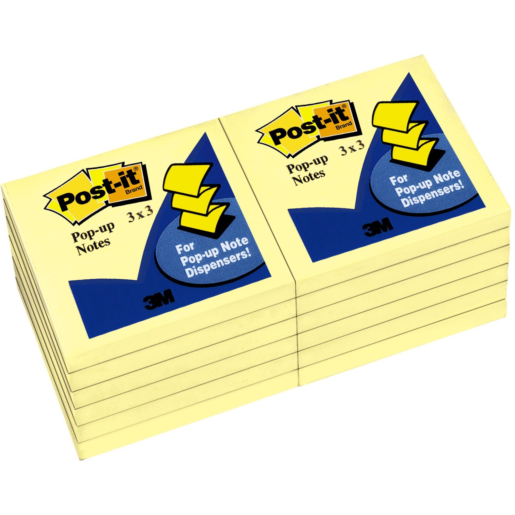 | Product Description | Post-it Pop-up Refill Notes are designed for use in Post-it Pop-up Note Dispensers (sold separately). Self-adhesive notes offer the convenience of grabbing just one note, with just one hand. The accordion-style notes pop up one at a time from a specially designed dispenser (sold separately), keeping Post-it Notes at your fingertips. Pads are the perfect size for notes, numbers and lists. Repositionable adhesive won't mark paper and other surfaces. The paper in Post-it Notes is sourced from certified, renewable and responsibly managed forests. Each pad contains 100 sheets. |