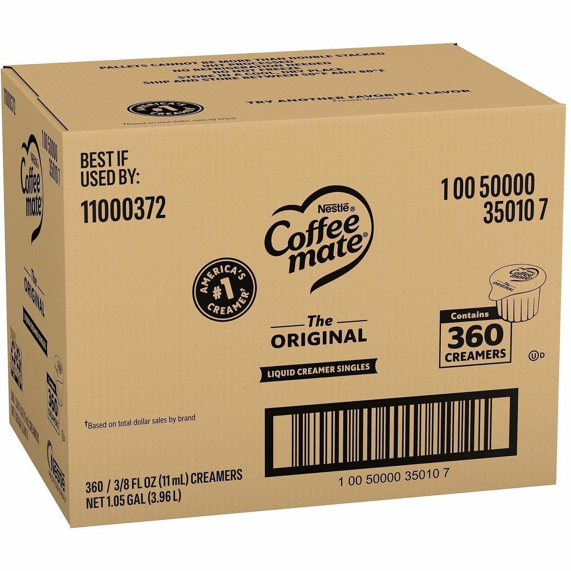 | Product Description | Delight your employees, customers and guests by offering Coffee mate liquid creamer in your workplace, breakroom or kitchen. Original Liquid Creamer Singles are a classic favorite. Creamer provides a deliciously rich, velvety smooth classic that enhances and enriches your coffee. Single-serve cups in a convenient dispenser are great for your breakroom or reception area. With this popular creamer in the office, everyone can enjoy coffeehouse indulgence without ever leaving the building. No refrigeration is necessary. Nondairy creamer is lactose-free, cholesterol-free and gluten-free. |