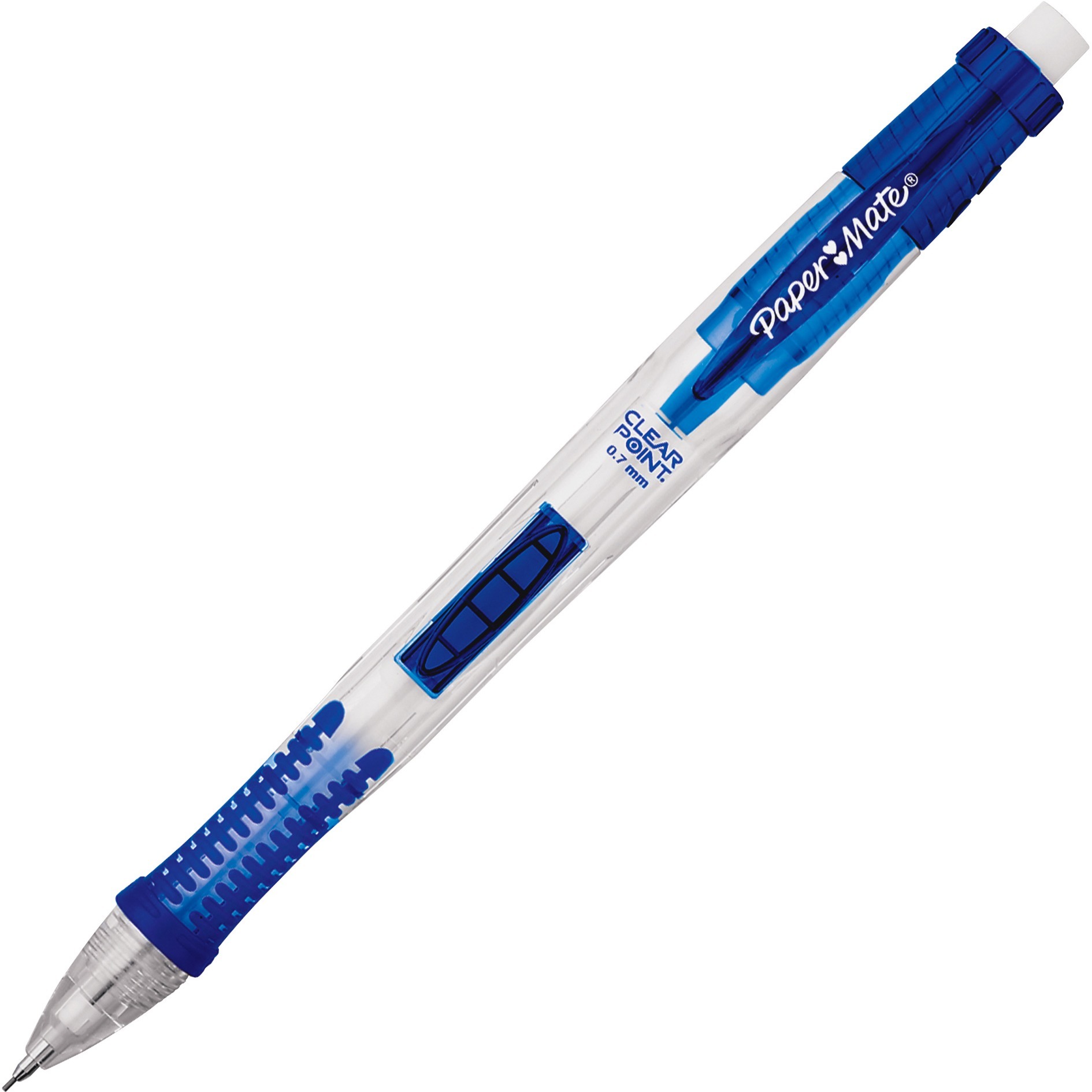 | Product Description | Mechanical pencil features a centrally located, click-advance button that lets you easily advance the lead without releasing your hold of the pencil. Soft grip is designed for added comfort and ease. Jumbo twist-up eraser is larger than standard erasers and advances easily. Mechanical pencil is retractable to protect pockets and purses from damage. Pencil is refillable. |