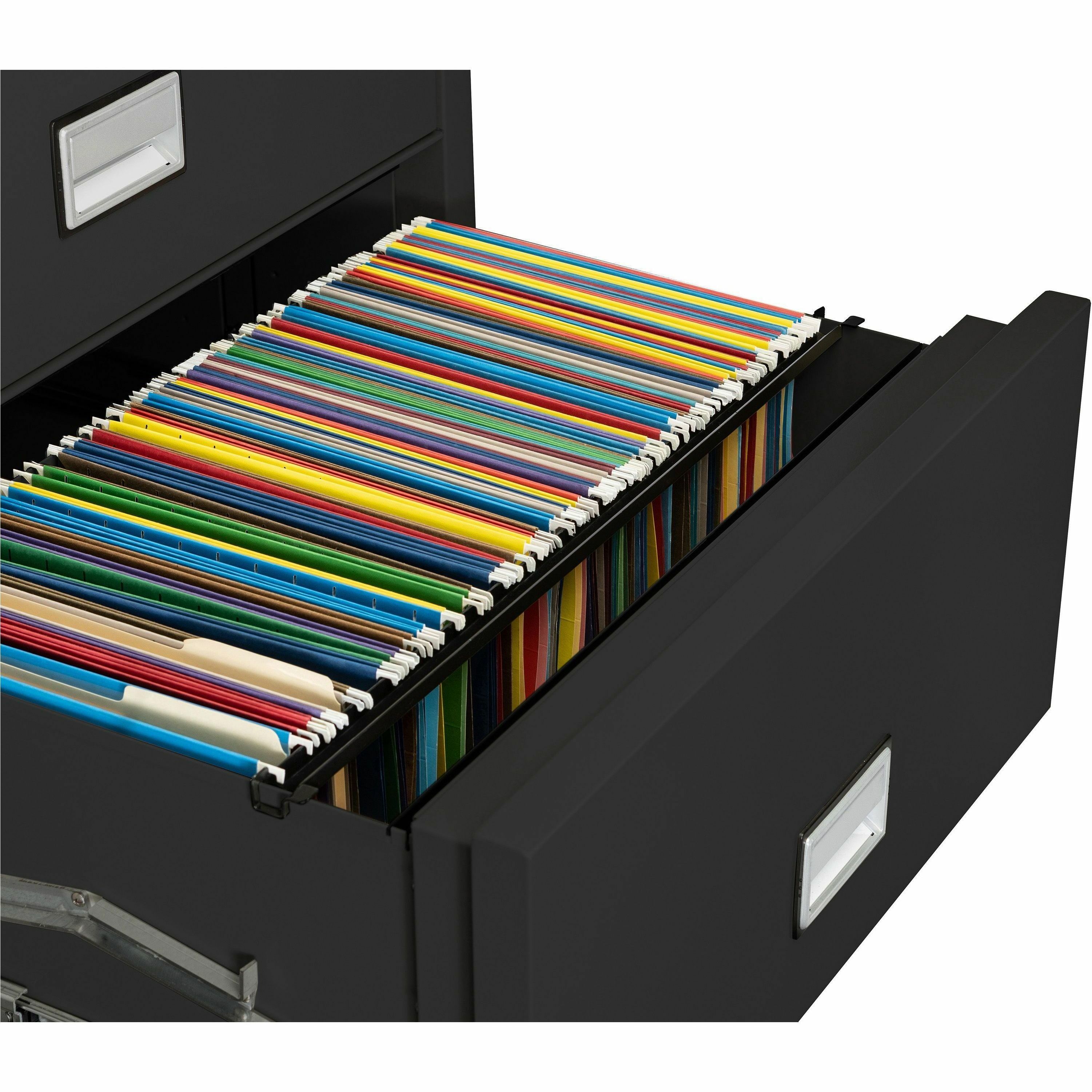 | Product Description | World Class Lateral File combines powerful protection and heavy-duty storage to meet your filing needs. Fire-resistant feature outlasts the harshest flames up to 1 hour. Individual drawer insulation prevents closed drawers from fire if one is left open. It also resists explosions up to 2000 degrees Fahrenheit and survives drops up to 30'. Labyrinth sealing system and special gaskets prevent water damage. Lateral file is MTC Grade B rated to protect CDs, DVDs, USBs and memory sticks. Easily access files using recessed drawer pull. Key-operated plunger lock provides security. Customize privacy by locking any drawer. Both drawers are equipped to handle legal-size/letter-size folders from front to back or side to side. Drawers use three-way suspension for stability and feature an anti-tip safety mechanism that prevents opening more than one drawer at a time. |
