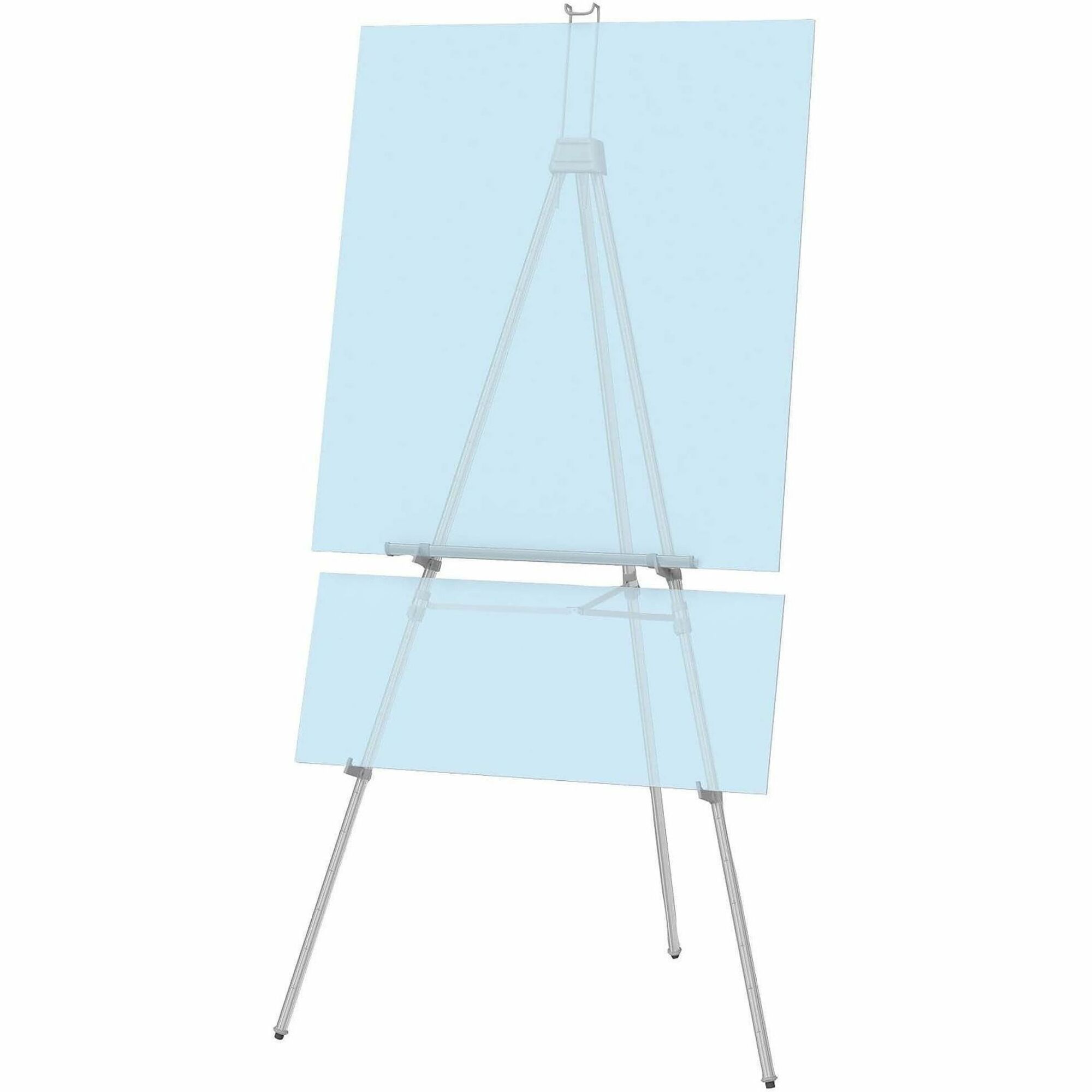 | Product Description | Heavy-duty easel features adjustable, tubular 1" aluminum legs that twist-lock into the desired height from tabletop to floor-standing position. Locking cross-braces and antiskid feet ensure stability, and adjustable display holders slide into the proper position. Conveniently downsize for storage and transport. Attachable Quartet pad retainers (50T and 51T) are available for flip-chart use (sold separately). Easel adjusts from 38" to 66" high and supports up to 45 lb. |