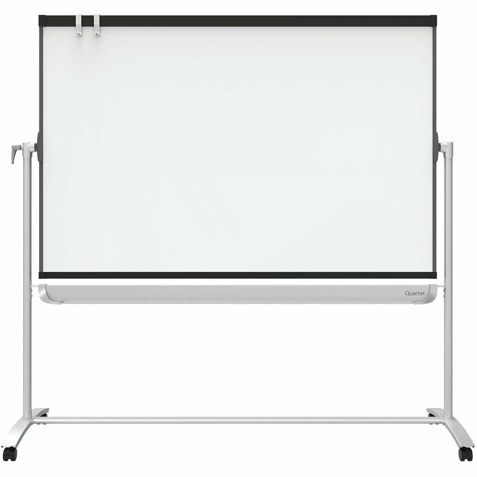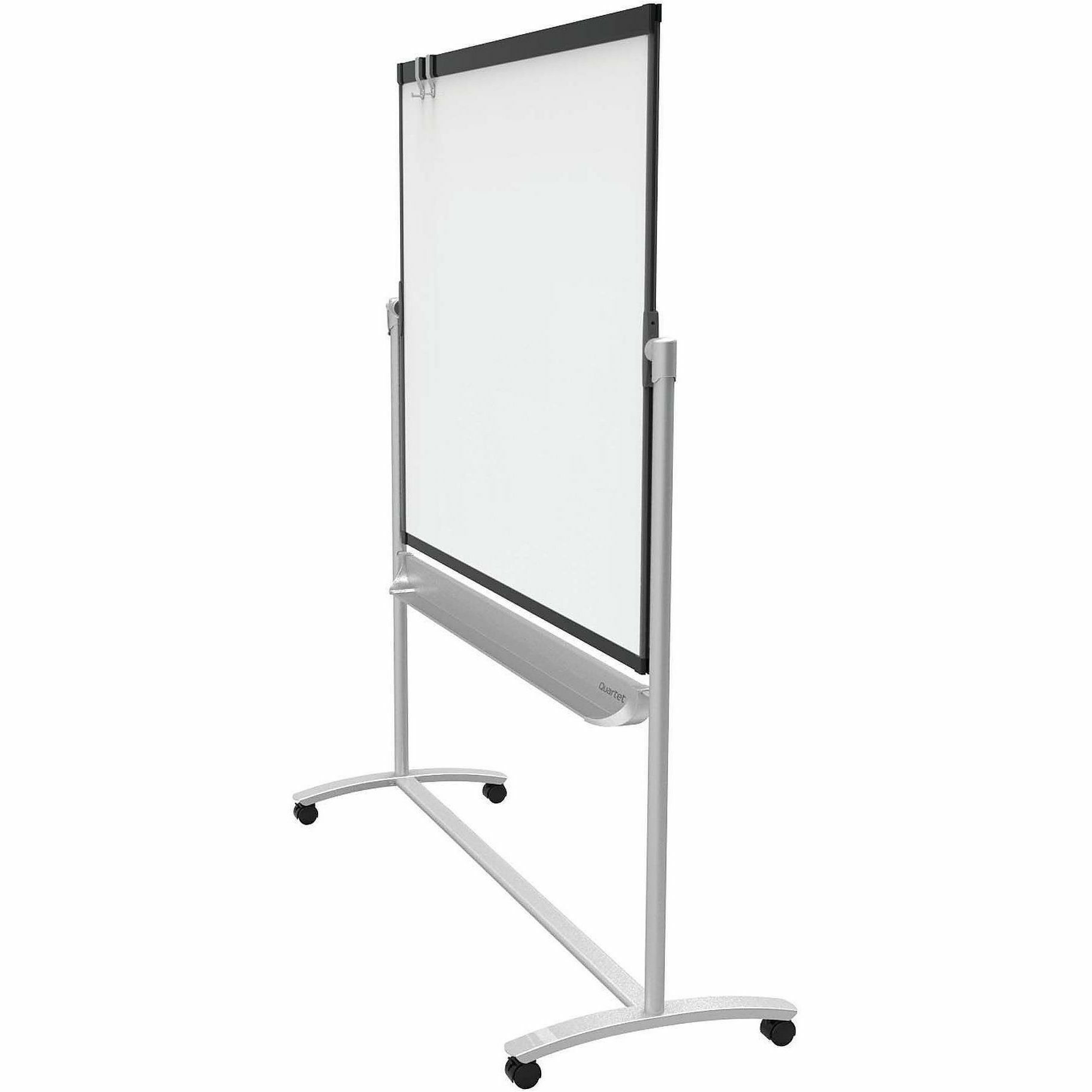 | Product Description | Mobile presentation easel features a versatile design that can be used as a magnetic whiteboard, magnetic bulletin board and flip-chart stand. Total Erase surface resists ghosting and staining to maintain a lasting professional appearance. Whiteboard surface is printed with a light grid pattern to keep your handwriting aligned. Reversible presentation easel offers double the work space to hold more of your notes in once place. Smooth-rolling, star-base wheels allow quick, easy mobility. Flip-chart holders support all standard-size flip charts (sold separately). |
