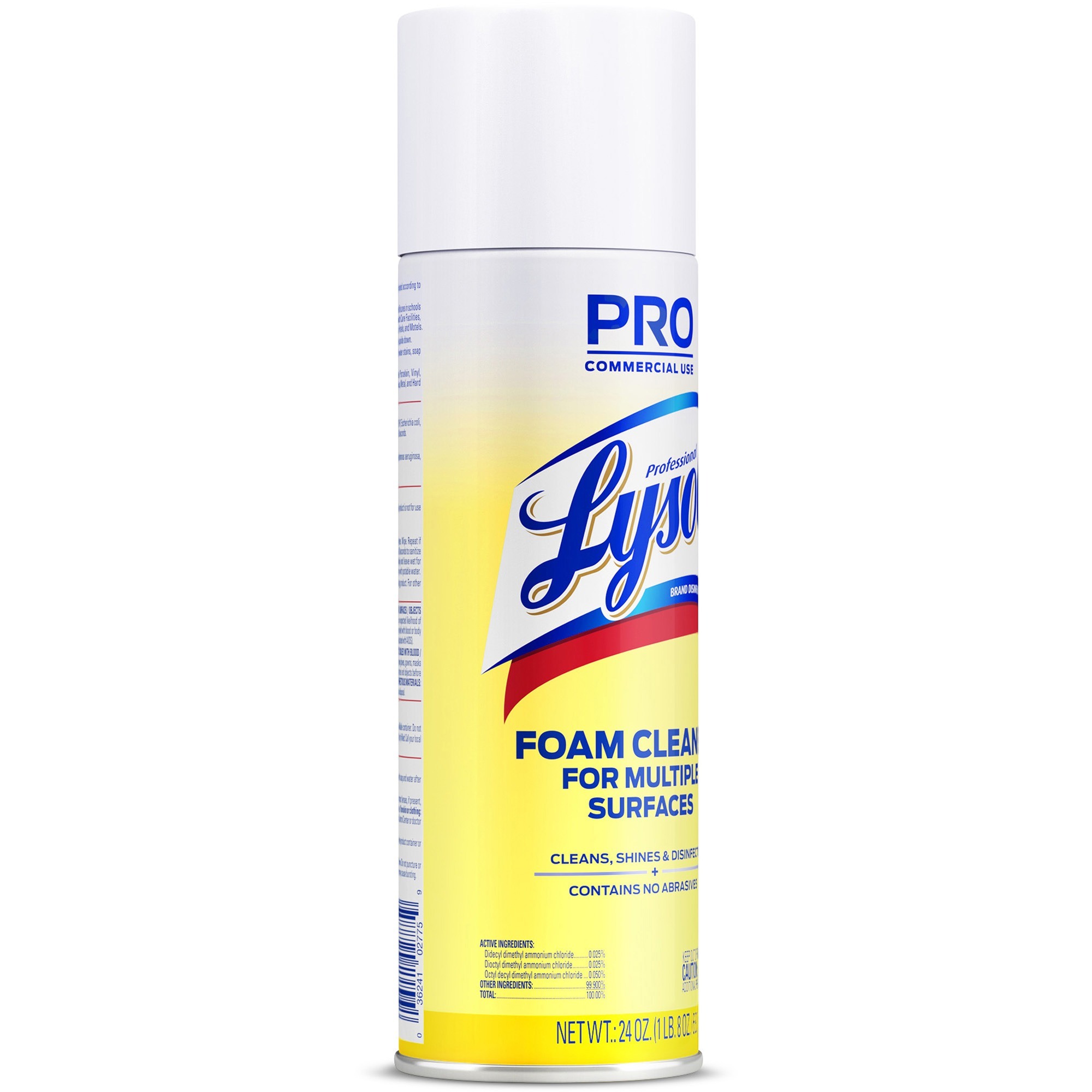 | Product Description | Lysol Professional Disinfectant Foam Cleaner cleans, shines, disinfects and deodorizes. This rich foam clings to surfaces to kill staph, salmonella, pseudomonas and HIV-1 (AIDS virus). Unique aerosol valve allows spraying from any position-even upside down to clean, shine, disinfect and deodorize. This product eliminates odors and prevents growth of mold and mildew. Use on fiberglass, glazed porcelain, synthetic marble, glazed tile, hard plastic and vinyl. Ready-to-use formula contains no chlorofluorocarbons (CFCs) and can be used for hospital disinfection. |