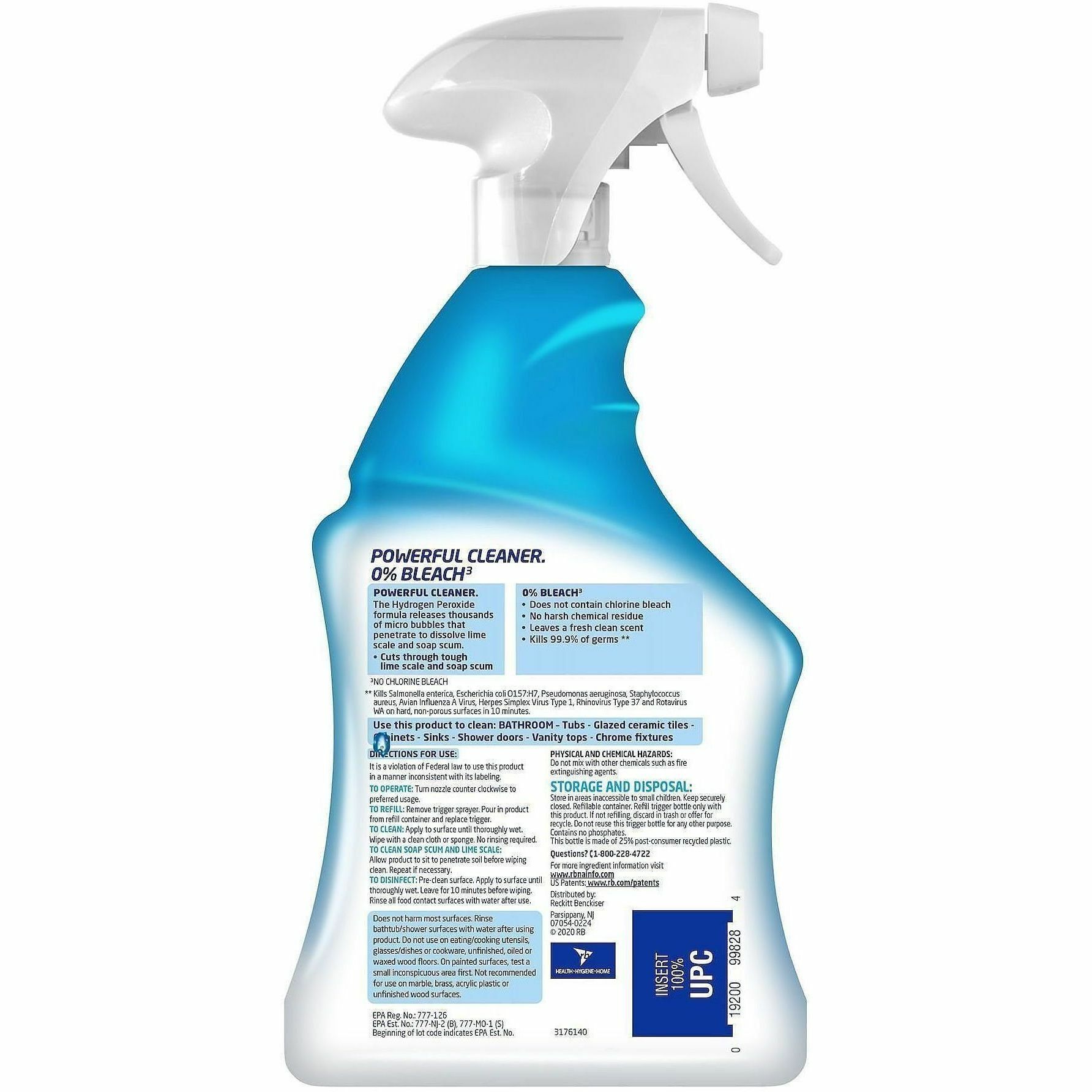| Product Description | Multipurpose cleaner features a powerful formula that uses hydrogen peroxide instead of bleach to kill 99.9 percent of viruses and bacteria without leaving any harsh chemical residue. Advanced solution dissolves grease and soap scum for long-lasting freshness. Easy-to-use spray bottle allows you to direct the cleaner exactly where you need to prevent wasteful use. Multipurpose cleaner is perfect for sinks, toilets, light switches, showers and more. |