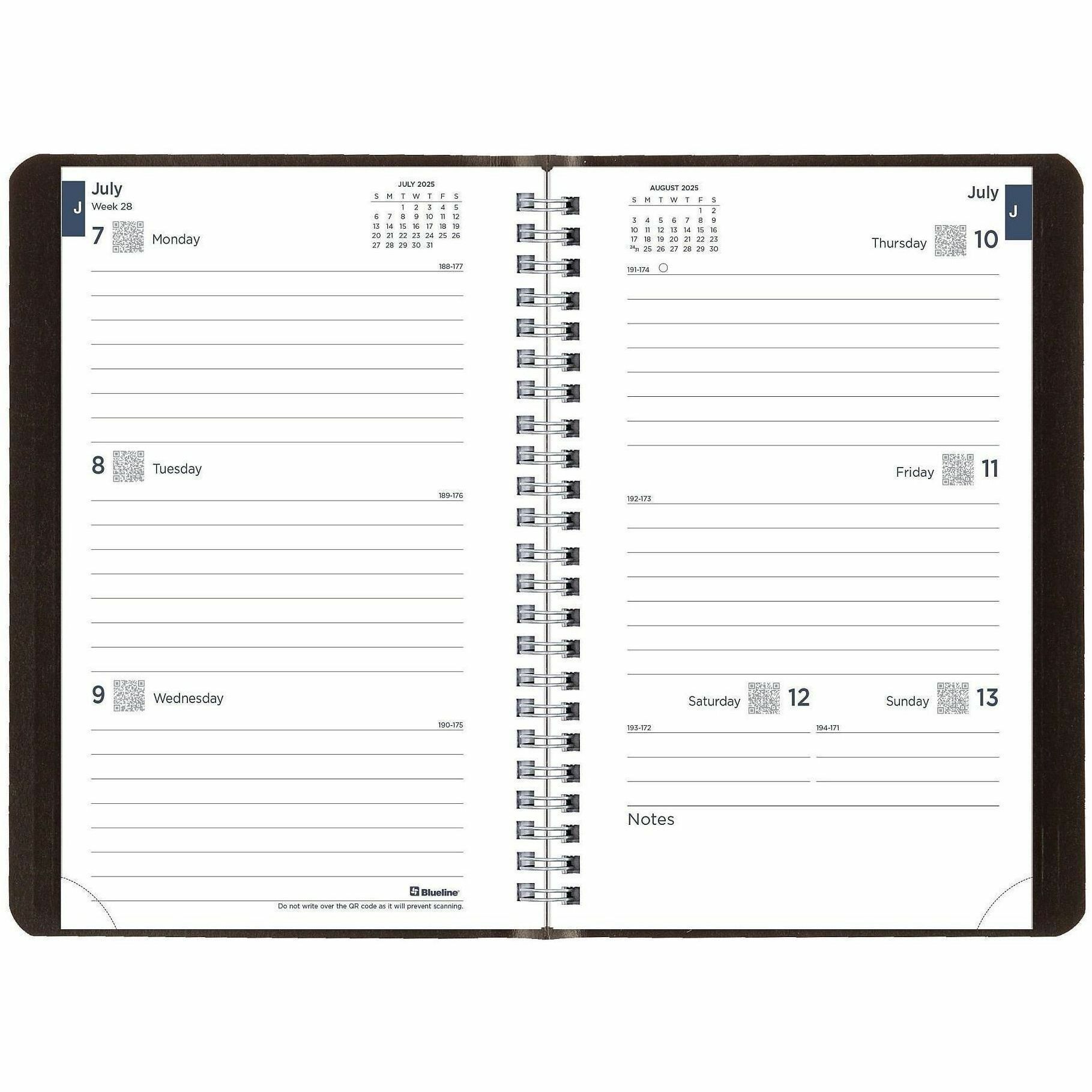 Julian Dates - Weekly - July 2025 to July 2026 - 1 Week Double Page Layout - 5" x 8" Sheet Size - Twin Wire - Black - Soft Cover, Tear-off - 1 Each