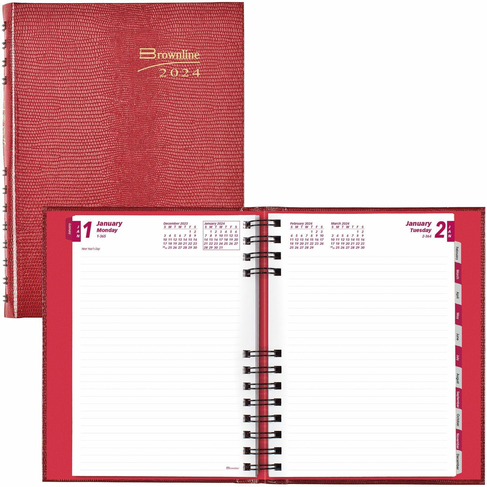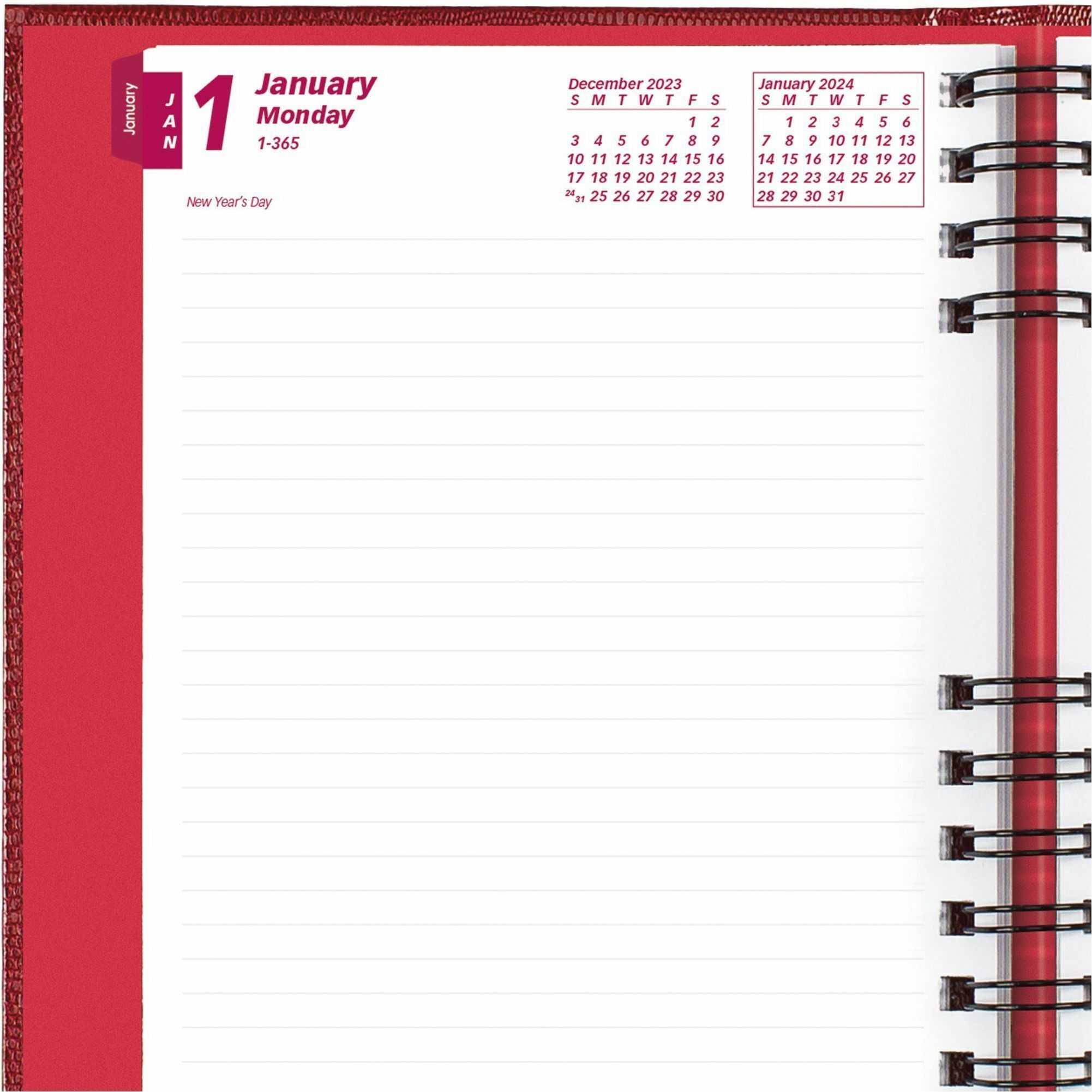 Daily - January 2025 to December 2025 - 1 Day Single Page Layout - 5 3/4" x 8 1/4" Sheet Size - Twin Wire - Red - 1 Each