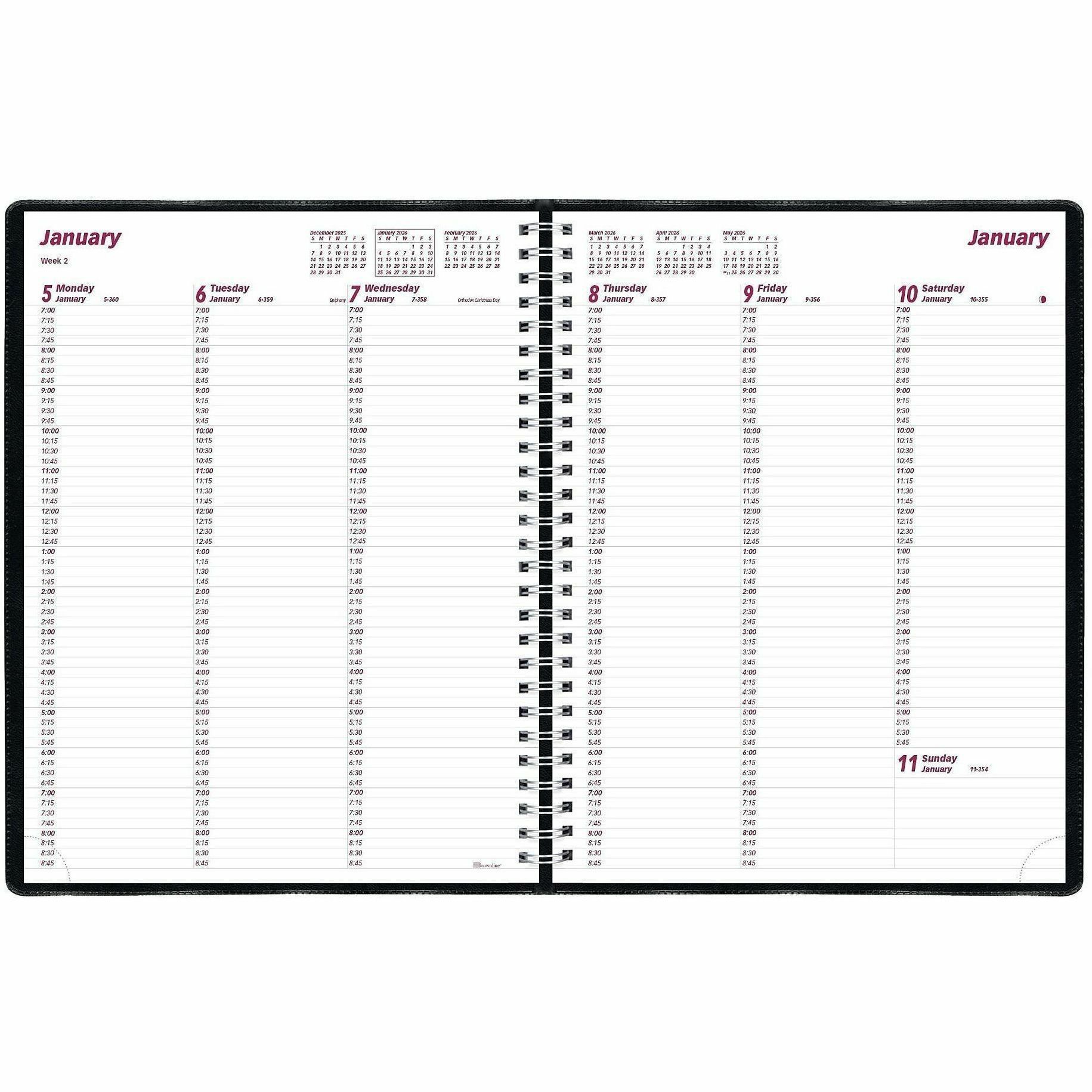 Weekly - 12 Month - January 2026 to December 2026 - 7:00 AM to 8:45 PM - Monday - Friday, 7:00 AM to 5:45 PM - Saturday, Quarter-hourly - 1 Week Double Page Layout - Letter - 8 1/2" x 11" Sheet Size - Twin Wire - Black - Appointment Schedule, Flexible Cover, Lined, Tear-off - 1 Each