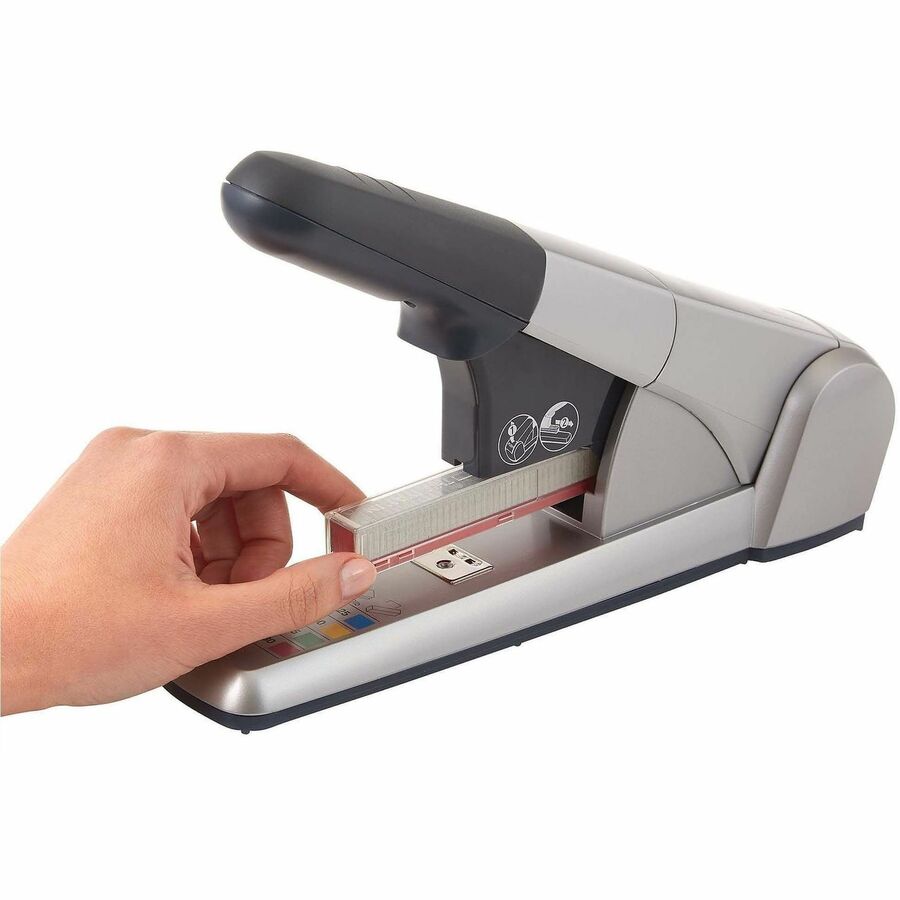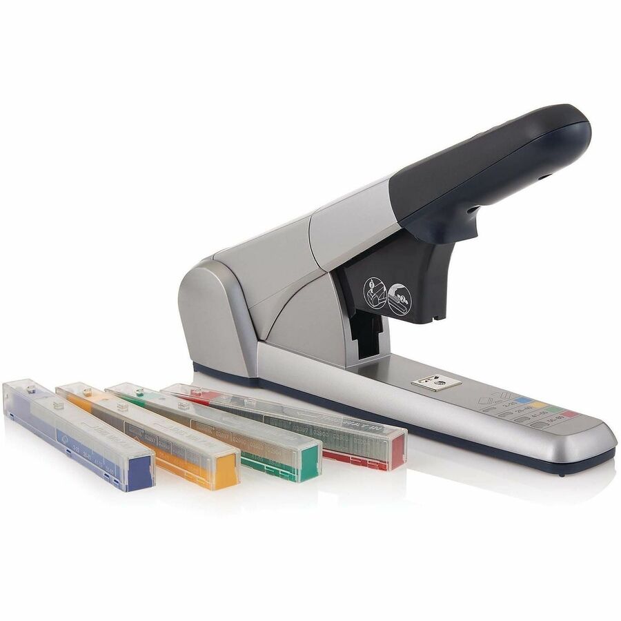 - Color-coded, heavy-duty cartridge stapler