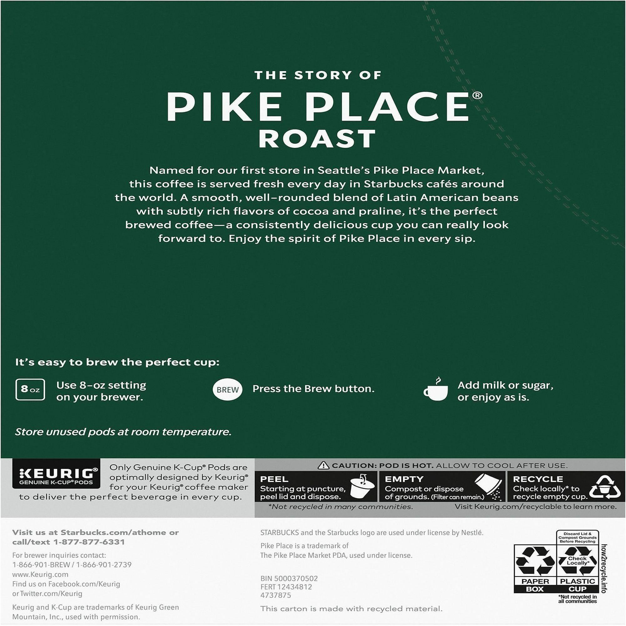 Compatible with Keurig Brewer - Medium - K-Cup - Pike Place Roast - 24/Box - 4 / Carton