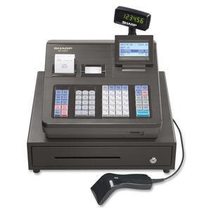 Cash register with handheld bar-code scanner is the ideal solution for businesses that want the latest features along with fast, quiet thermal receipt printing and large eight-line display. Thermal printing speed is 13.3 lines per second. Microban Keytops provide built-in antimicrobial protection molded into the cash register keytops to inhibit the growth of damaging bacteria. 7,000 price look-ups allow quick and accurate entry. 99 departments easily separate product types. Use the SD card slot (4 GB to 32 GB) for and easy data backup/transfer. The SD card slot can link to Quickbooks accounting software to integrate transactions. Cash register also features two displays (one customer and one operator), 40 clerk IDs, four tax rates, simplified tax and department programming, receipt generator with personalized logos, and drop-in paper loading. Included locking drawer has six coin departments and five bill compartments. Memory backup requires only two AA batteries. |