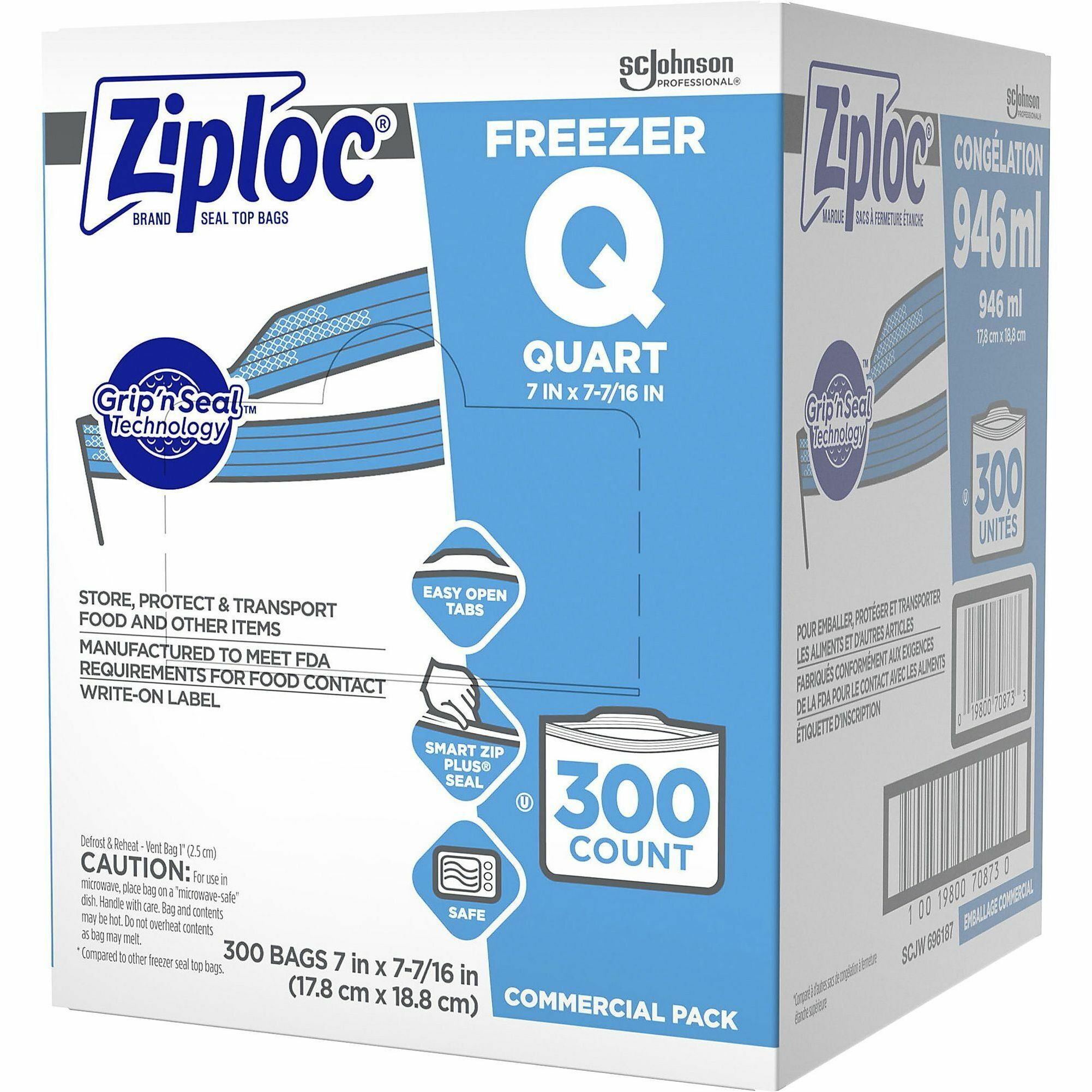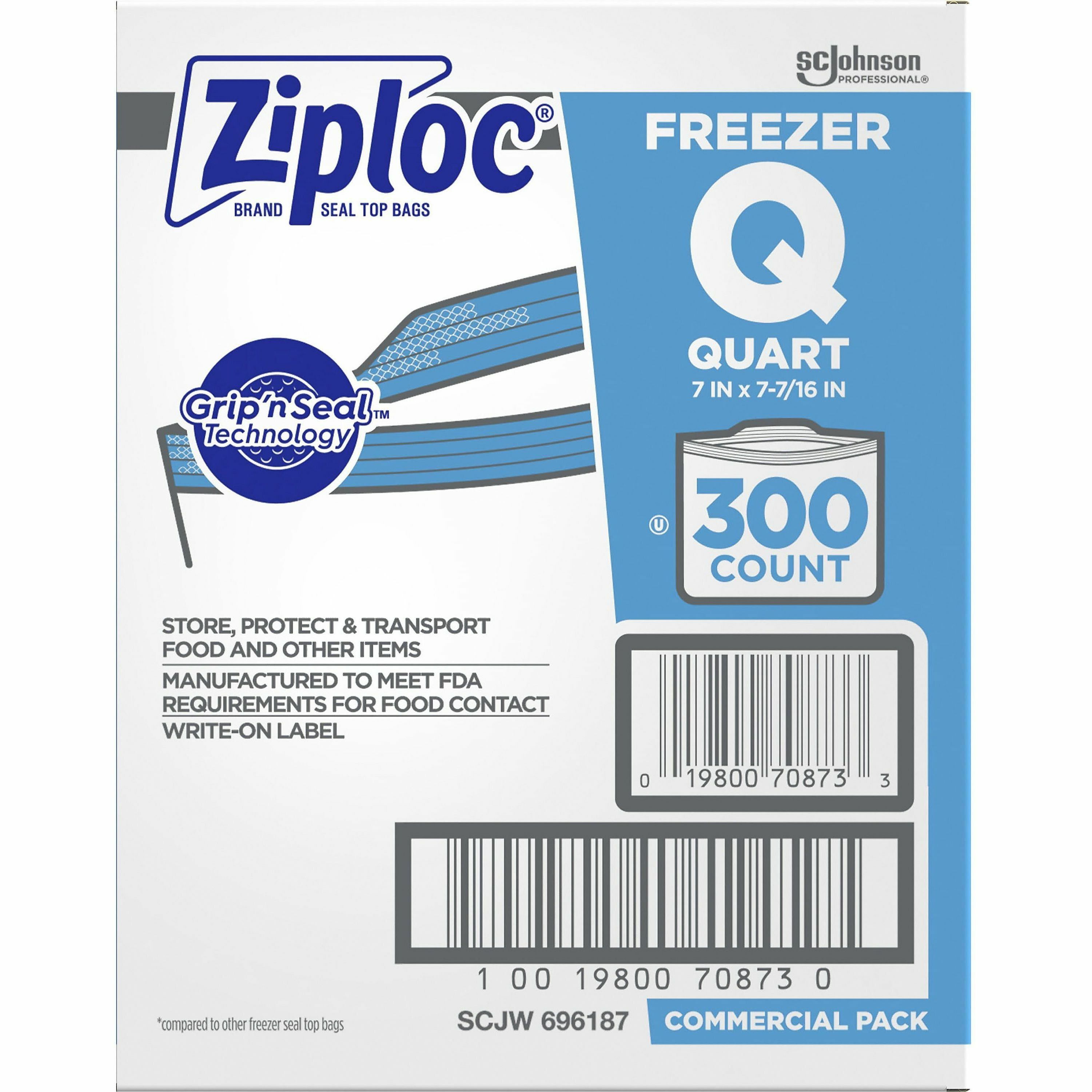 Freezer bags feature Grip n' Seal technology. Triple system seal features an extended tab, easy-grip texture and double zipper. The extended tab and easy-grip seal make it easier to open and close the bag while the airtight zipper ensures that each plastic freezer bag blocks out air, providing unbeatable protection from freezer burn. That means less wasted food and more money saved. |