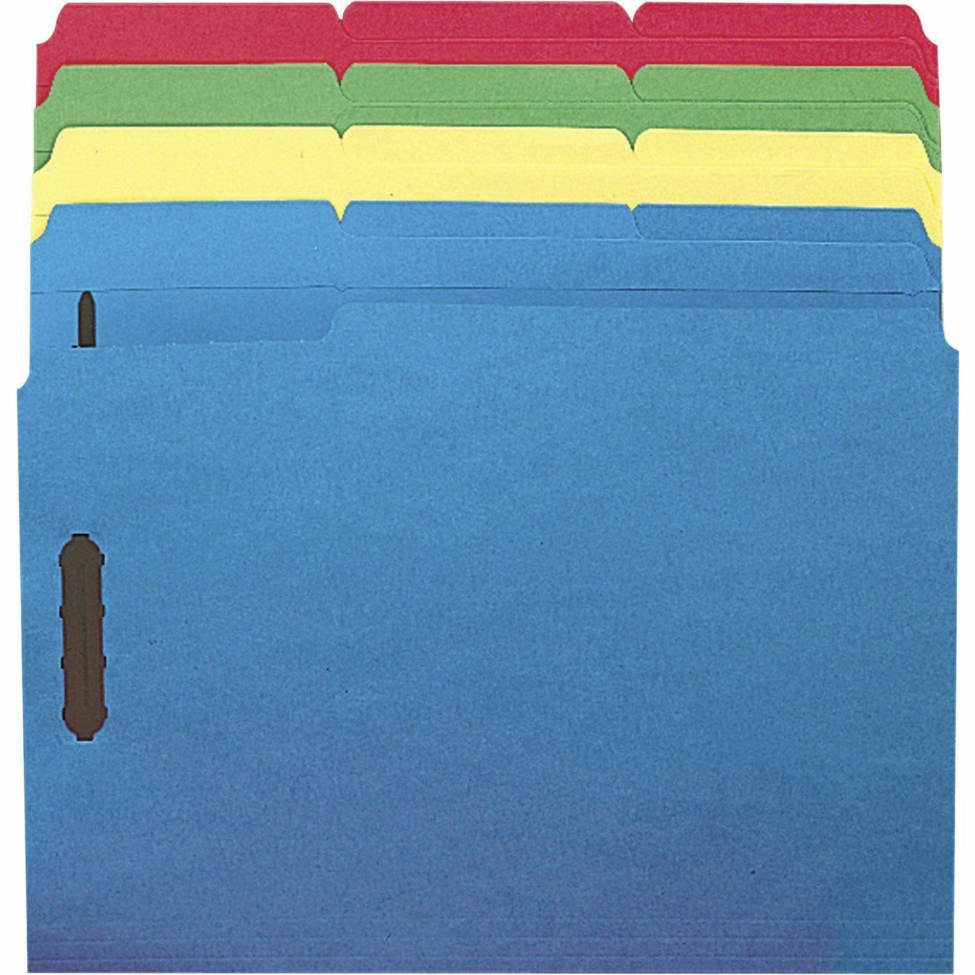 8 1/2" x 11" - 3/4" Expansion - 2 x 2K Fastener - 2" for Folder - Top Tab Location - Assorted Tab Position - 11 pt. - 2 Plys - Blue, Green, Red, Yellow - Reinforced - 10% Recycled - 50 / Box
