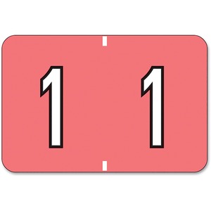 Color-coded numeric labels on a roll match the Barkley NBKM series. Attach these self-adhesive labels to end tabs to optimize your shelf filing system. Each pink label has the number 1 printed twice so it will appear on both sides of the tab when folded and applied. The 1-1/2" wide x 1" high size allows you to include up to four color-coded numbers with a file heading on your end-tab folder or up to seven color-coded numbers without a file heading. |