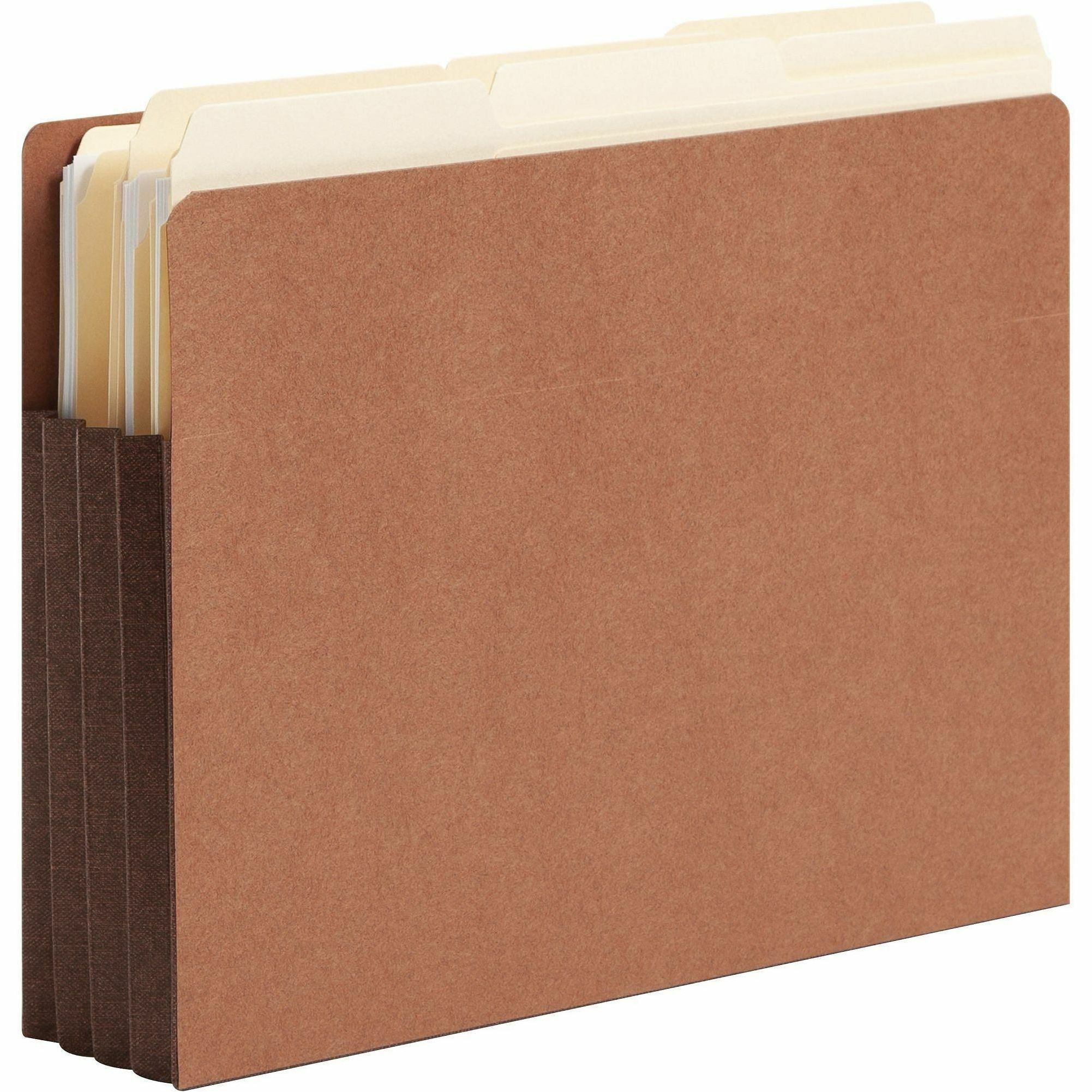 8 1/2" x 11" - 3 1/2" Expansion - 1 Pocket(s) - Top Tab Location - 12.5 pt. - 2 Plys - Dark Brown - Tear Resistant - 30% Recycled - 10 / Box