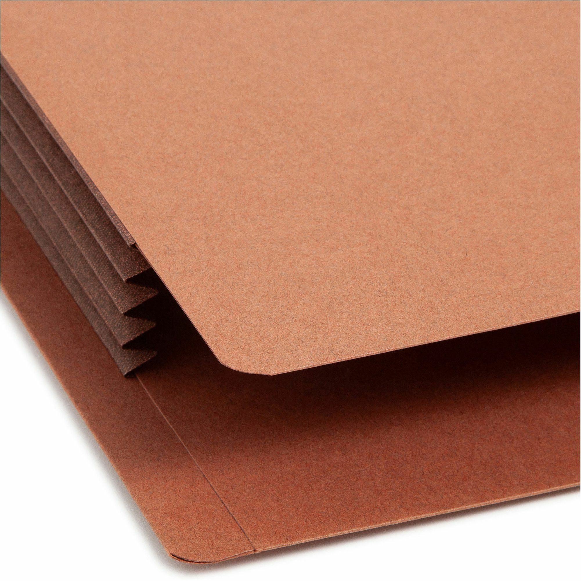 | Product Description | Extra-wide redrope file pockets feature two-ply, straight-cut end tabs. Favored by law firms, these letter-size pockets are made to hold standard top-tab folders without bulging out the side gussets. Organize depositions, discovery correspondence and more for a single client or matter in one pocket. Use extra-wide pockets to transfer desk drawer folders to central shelf file archives. Fully lined, tear-resistant gussets in bright colors allow color-coding by case or matter type and provide extra strength where needed. |