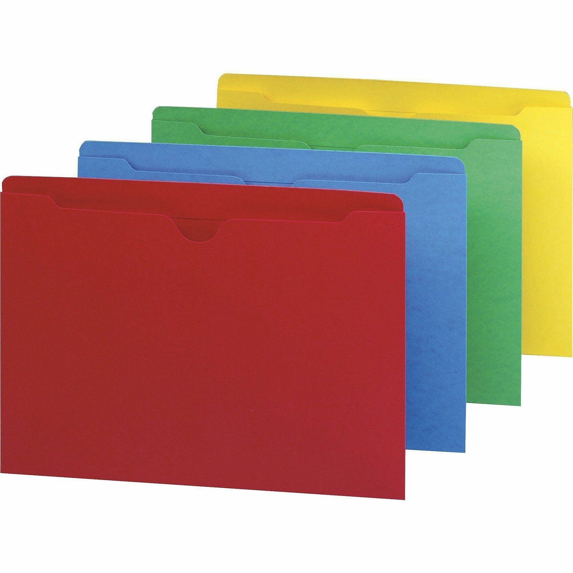 8 1/2" x 11" - 50 Sheets Capacity - 11 pt. - 2 Plys - Blue, Green, Red, Yellow - Slip Resistant, Reinforced Tab - 10% Recycled - 100 / Box
