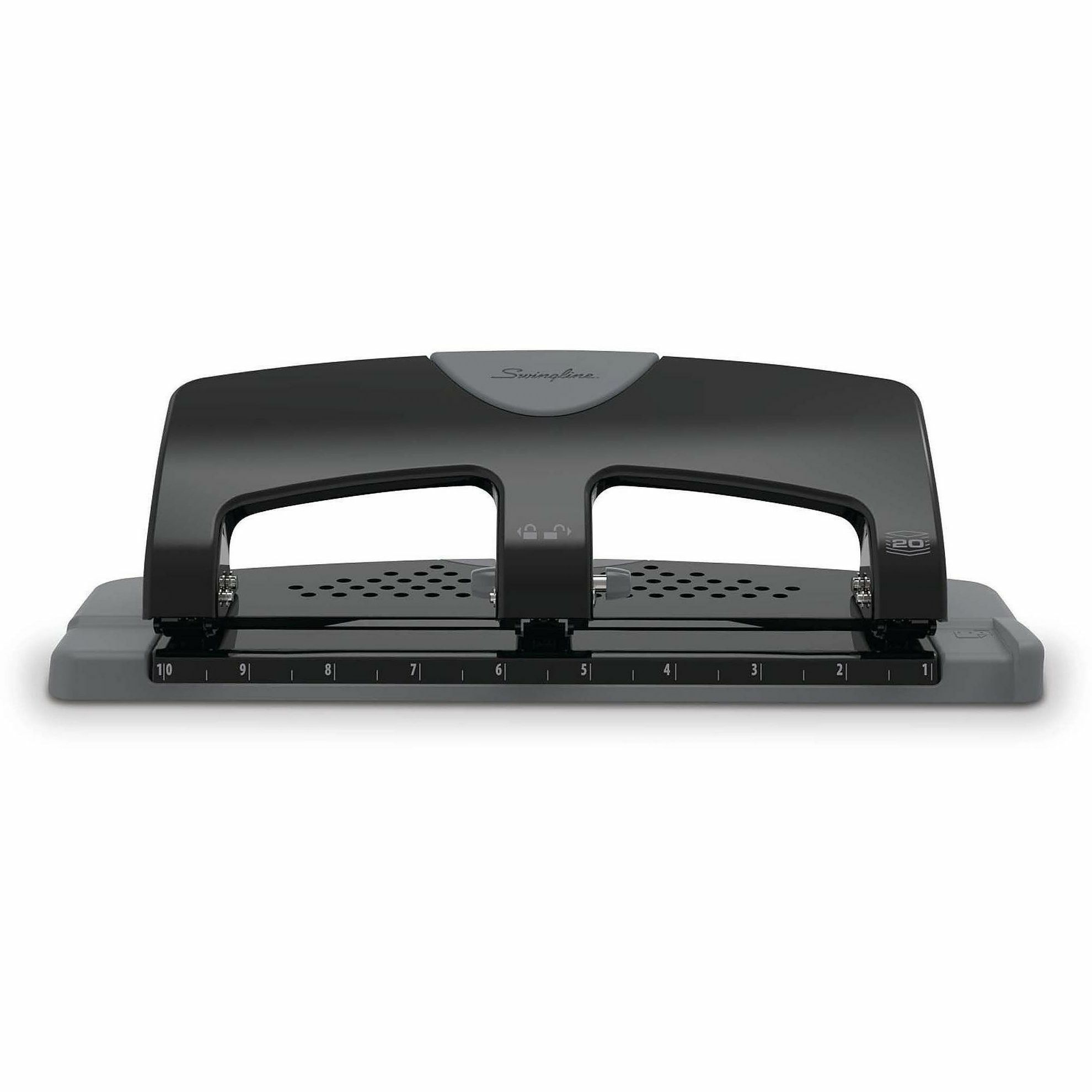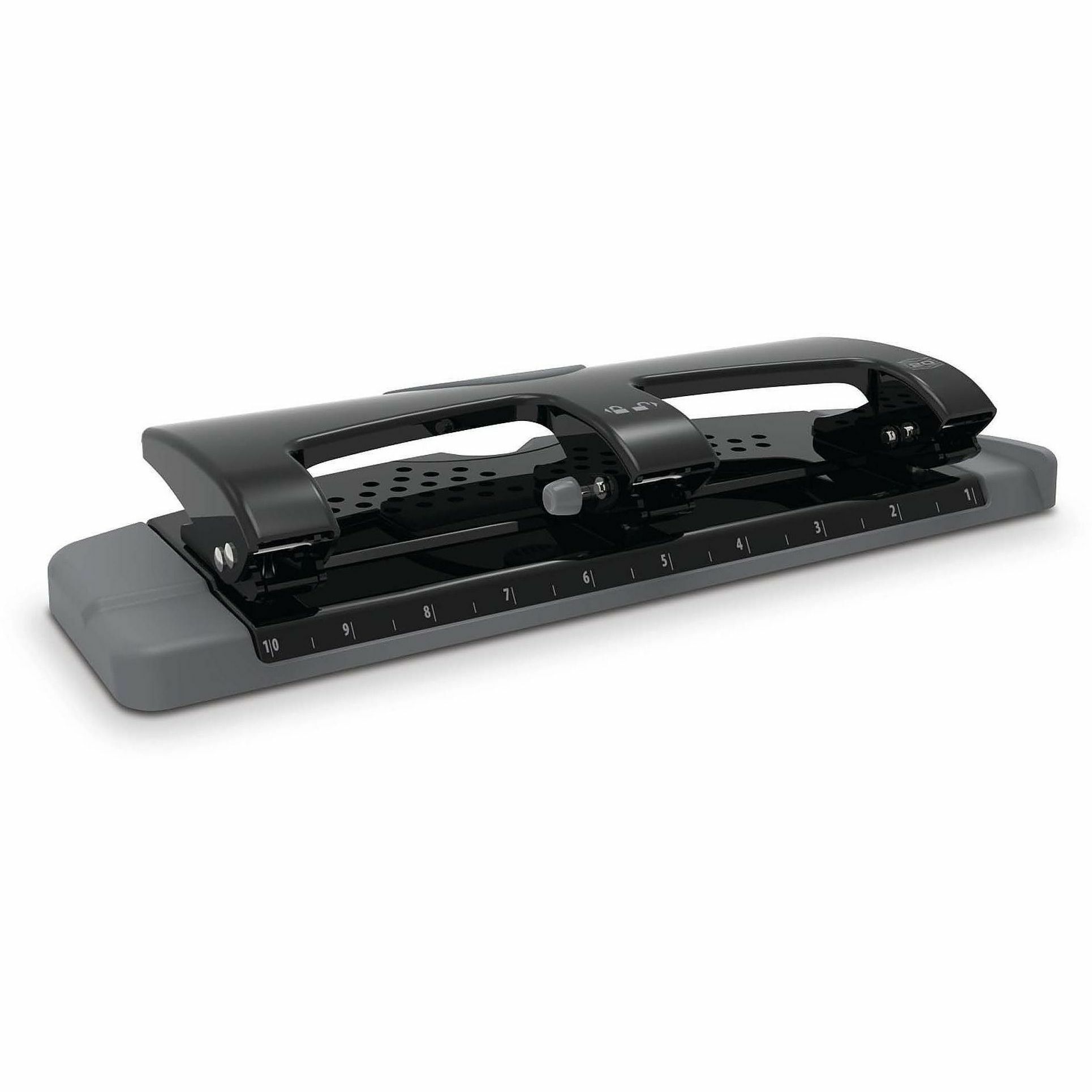 3 Punch Head(s) - 20 Sheet - 9/32" Punch Size - Metal - 4.5" Width x 12" Depth x 4.4" Height - Black, Gray