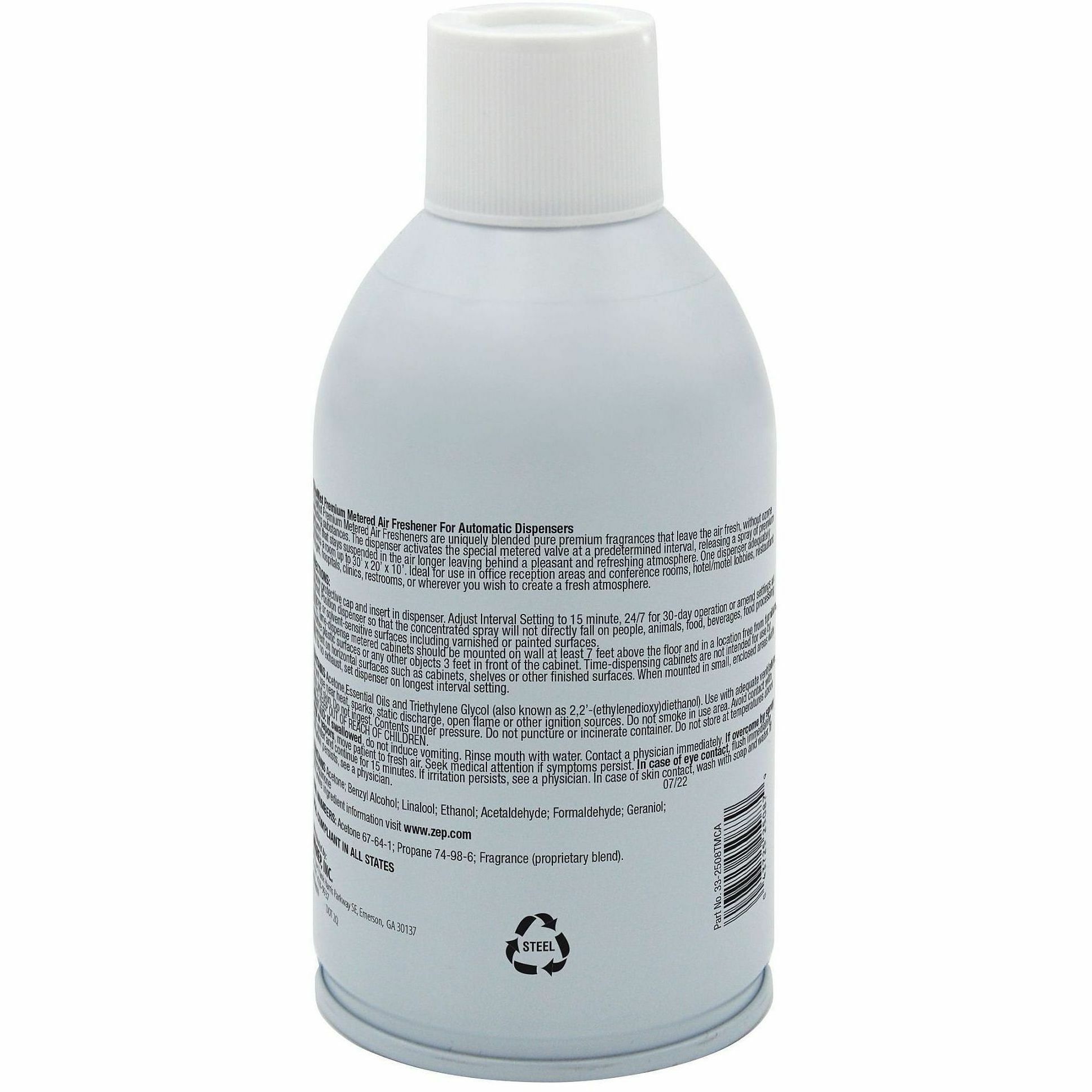 | Product Description | Elevate your customer or visitor experience with this innovative, Premium Metered 30-Day Air Freshener - Citrus. Perfect for your odor control program, fragrance and odor counteractants in one can neutralize stubborn odors swiftly and provide lasting aromatherapy from the high-quality fragrance made with essential oils. Dual actuator system creates small micron dispersion, eliminating fallout. High fragrance load percentage ensures longest-lasting experience. Fresh lemons, limes and oranges infuse the air with a citrus mist for a refreshing sweetness. Dual odor counteractants target specific malodor-causing particles. Use this refill in TimeMist full-sized, metered fragrance dispensers (not included) for 30 days of continuous use when set at 15-minute intervals. |