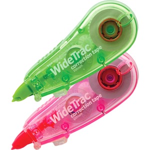 WideTrac Correction Tape is extra wide and perfect for correcting handwritten notes in a single strip. Easy-to-hold compact applicator precisely corrects errors within lines of wide-ruled notebook paper. Dual Gear technology features a self-tightening mechanism that prevents looping and pulling of the tape. Premium, breakproof tape lays down smooth and blends well with paper. Compact applicator is made of a high percentage of recycled materials and easy to store in backpacks, planners and purses. Applicator is nonrefillable. |