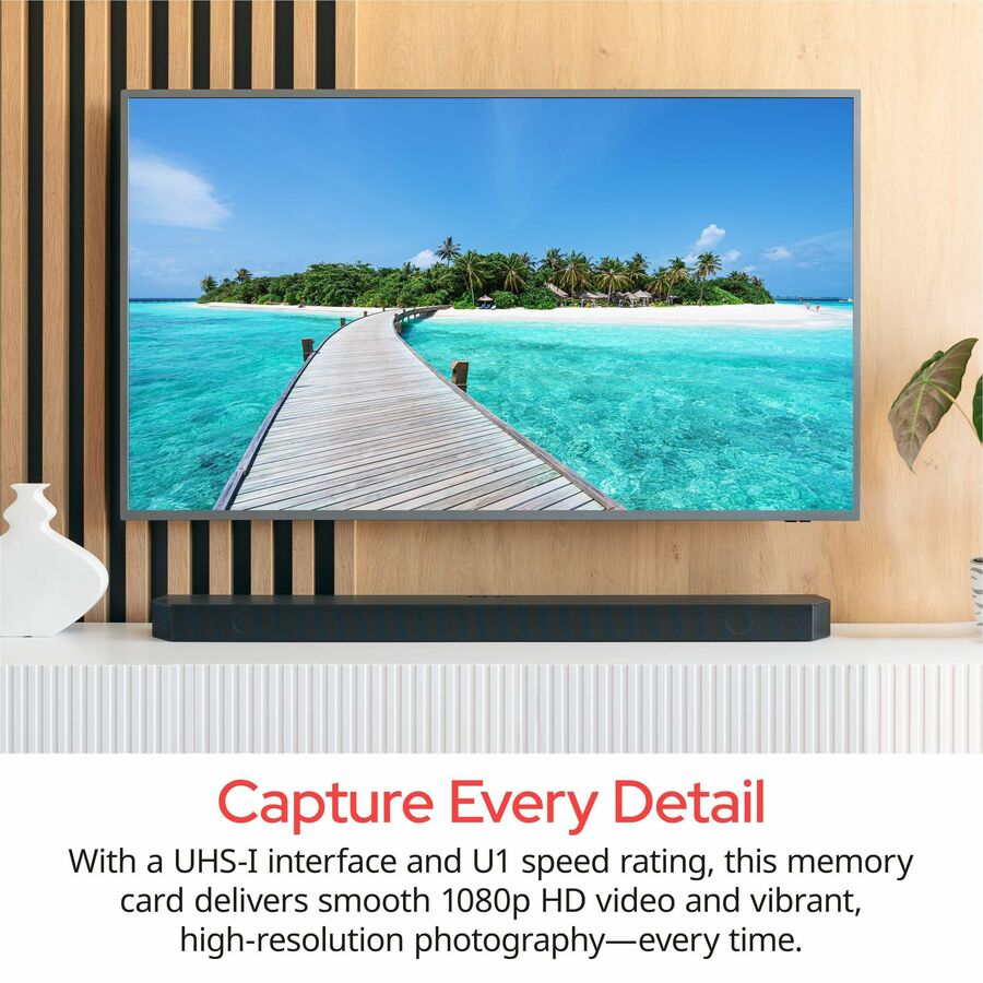 | Product Description | Photography enthusiasts looking for quality performance at a great value will find it with this Premium SDXC Memory Card. Shoot events in full 1080p HD video or burst photography using your point-and-shoot or mid-range camera. The UHS-I interface with U1 speed rating ensures you'll never miss a moment of the school play, weekend soccer match or school basketball game. The extended capacity (128GB) lets you store more memories. Read speed up to 45MB per second lets you download and upload files to your computer faster. Card is water-resistant, shockproof and temperature-proof. |